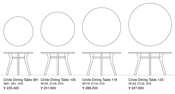 柔らかさとシャープさを両立させたデザインのサークルテーブル。 空間に合わせて選べる4サイズをご用意。実用性を徹底的に追及しつつ、木目や節の豊かな表情や漂う品格、肌に触れた時の感触などを大切に丁寧につくられています。