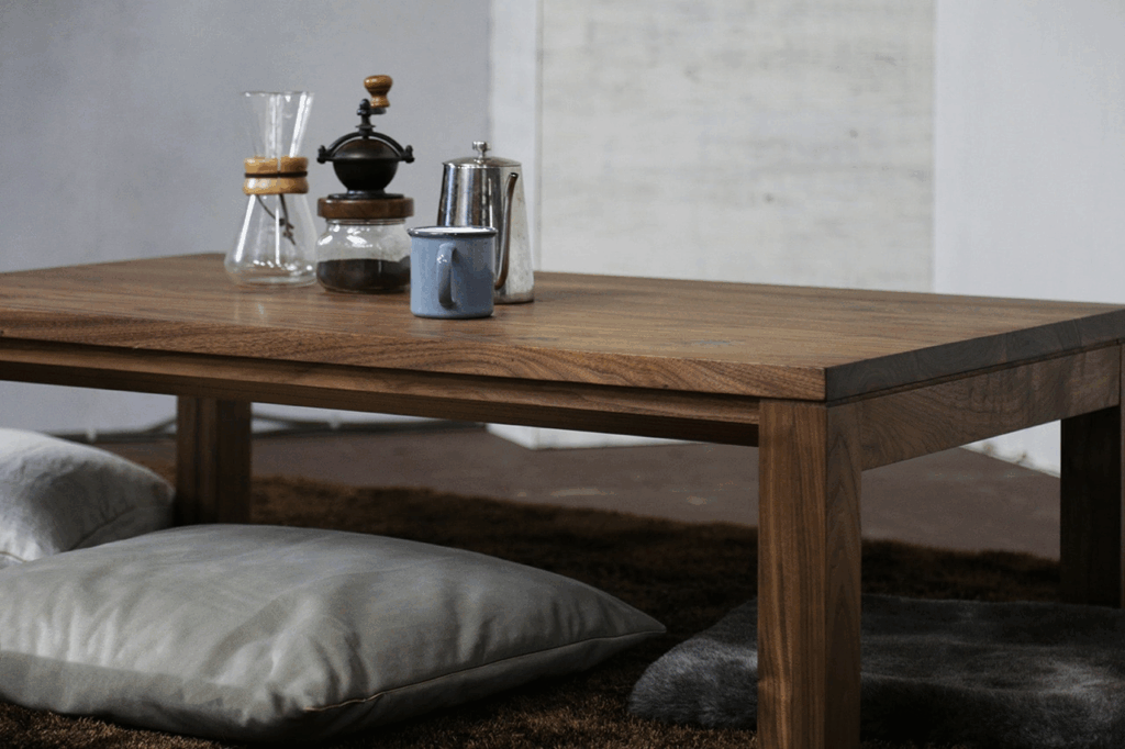 コタツと言えばやっぱり団欒。みんなで集まってごはんを食べたりお酒を呑んだりテレビを見たり。無垢材のコタツなら、家族や友だちとの思い出を重ねながら、永くお使いいただけます。
