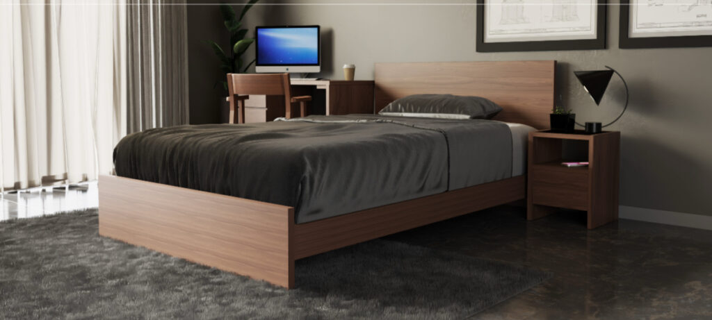 寝室のイメージです。ミディアムテイストのウォールナット木目が優しく、やすらぎのある空間に仕上がります。