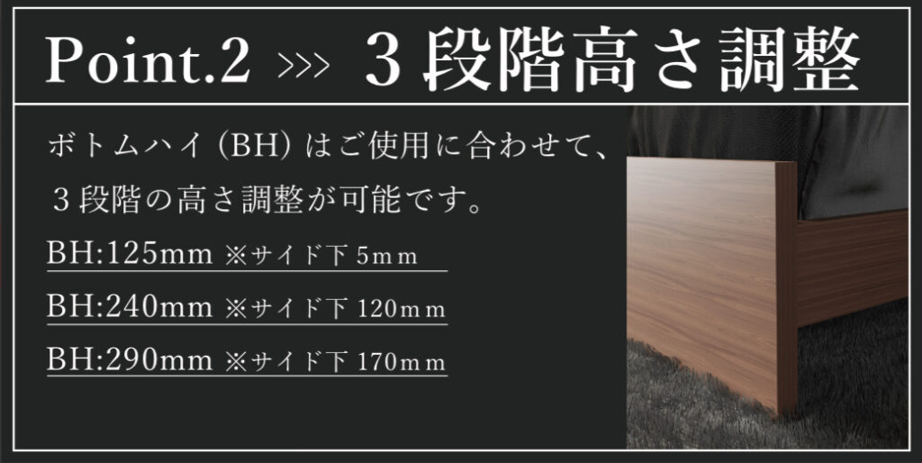 マットレスの厚みに対して、ロータイプに変更も可能です。