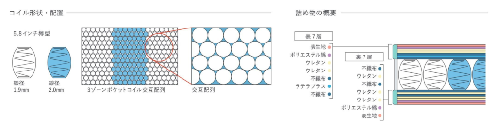 マットレスはサータの5.8インチマットレスをセット。3ゾーンポケット交互配列なので、お腰元をしっかりと支えてくれます。