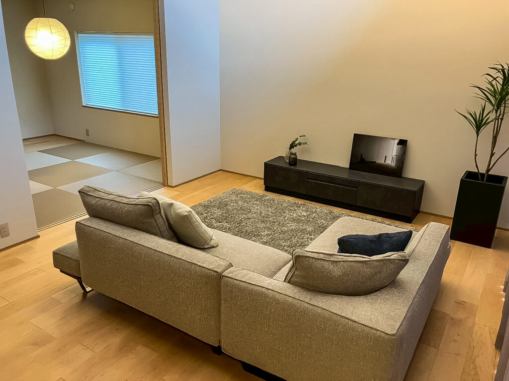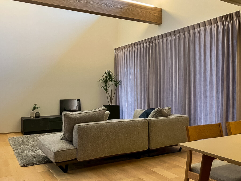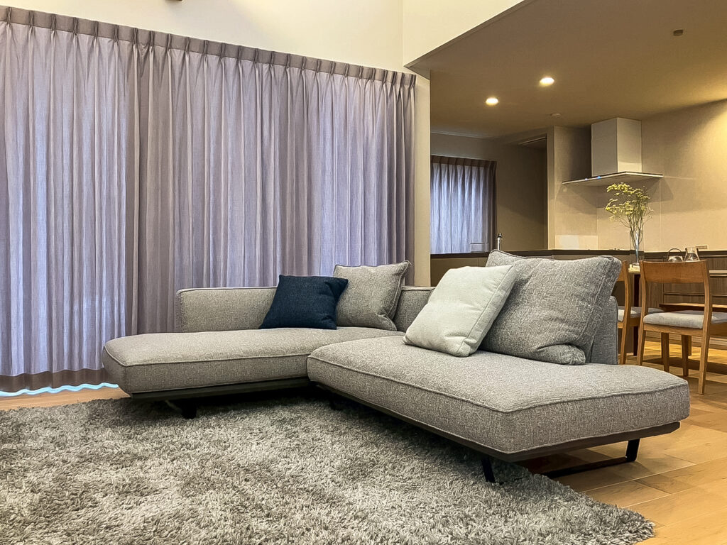 ローバックの開放感と浮遊感のあるソファでお部屋をより広く感じられる空間に致しました。