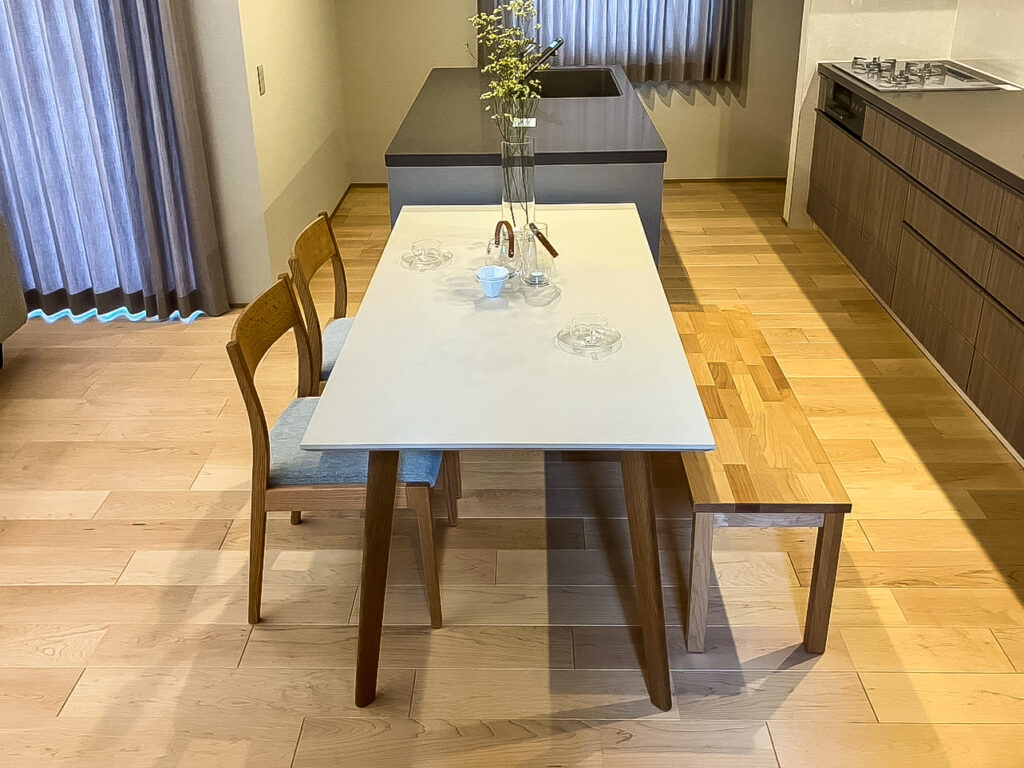 マットな質感が美しい、次世代素材を使用した耐久性に優れたダイニングテーブルです。