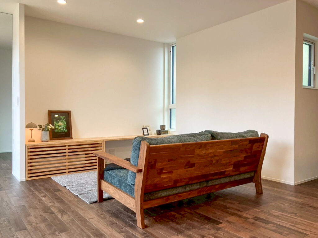 スタンダードなウッドフレームのアームソファをベースにしたシンプルなデザインです。
