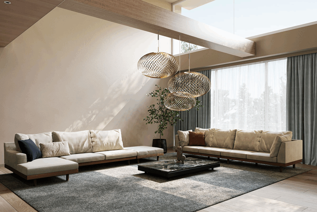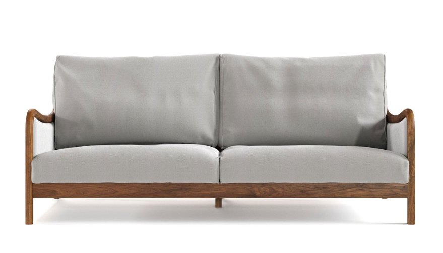 背中をしっかりと支える背面ウッドフレームが、機能美と造形美を兼ね備えた美しさのあるソファです。