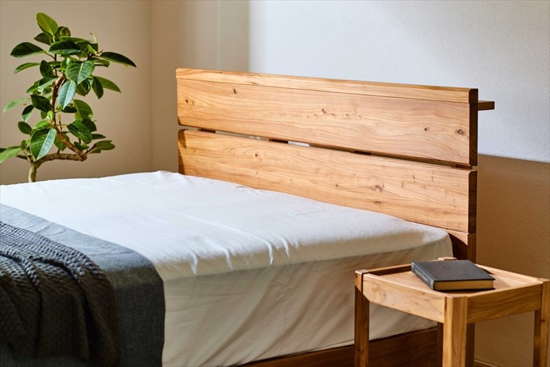 ※完売 ヘッドボード部分が楡(ニレ)無垢材のオイル仕上げで仕立てられた天然木の風合いを活かしたベッドフレームです。