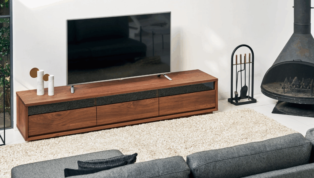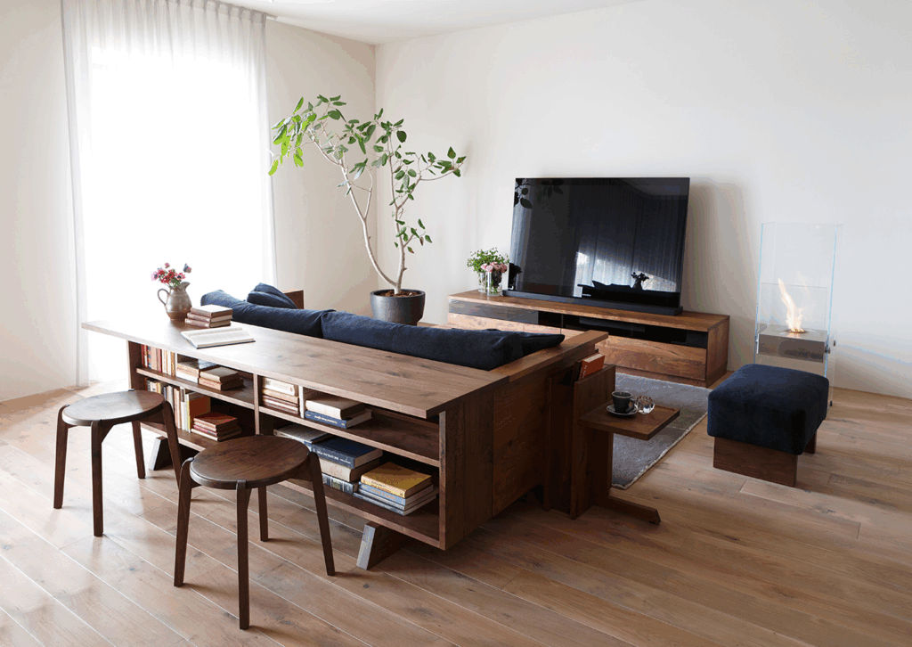 最も視線が集まる場所で、機能を静かに支えてくれる美意識の高いデザインのTVボードです。