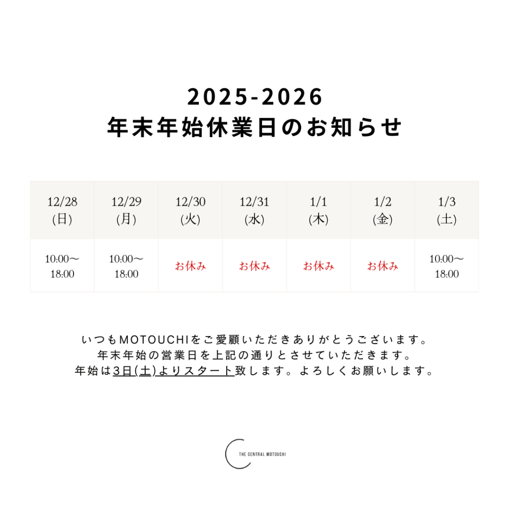2025年12月30日(火)~ 2026年1月2日(金)の4日間を休業日とさせていただきます。