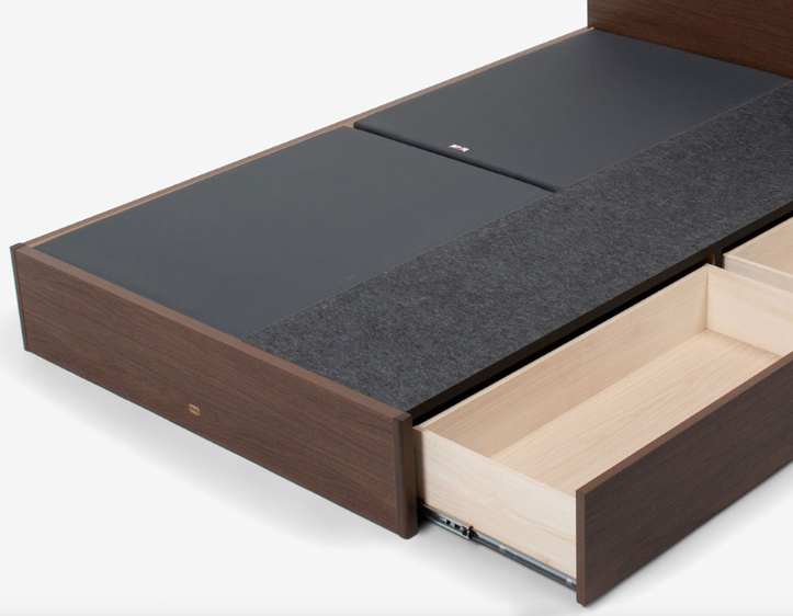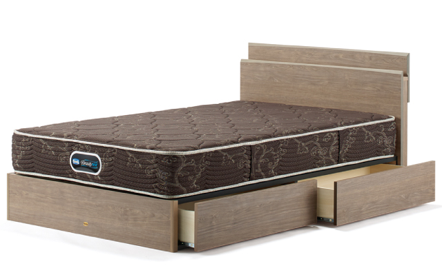 ベッドに引き出し収納がついているタイプ。デッドスペースになりがちなベッド下が、大きな収納スペースに。