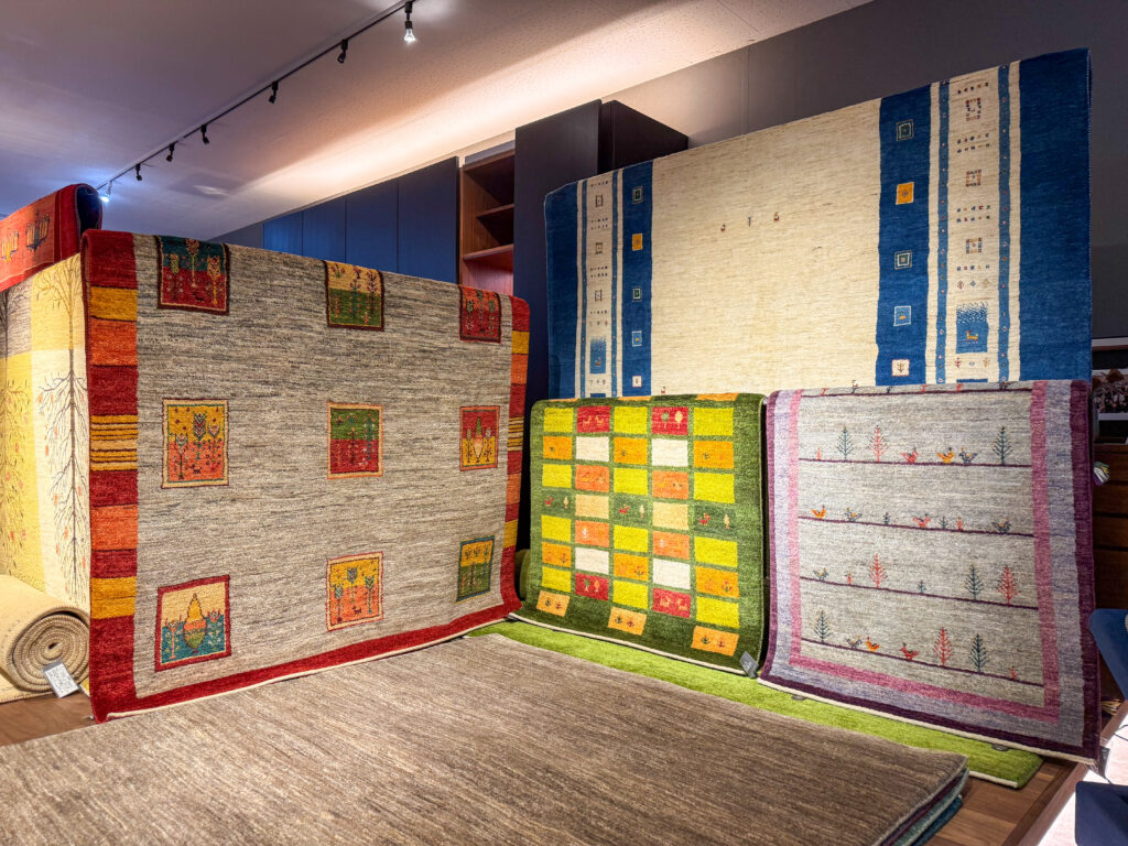 足元あったかギャッベをたくさん展示致しました。皆様のご来場を心よりお待ちしております。