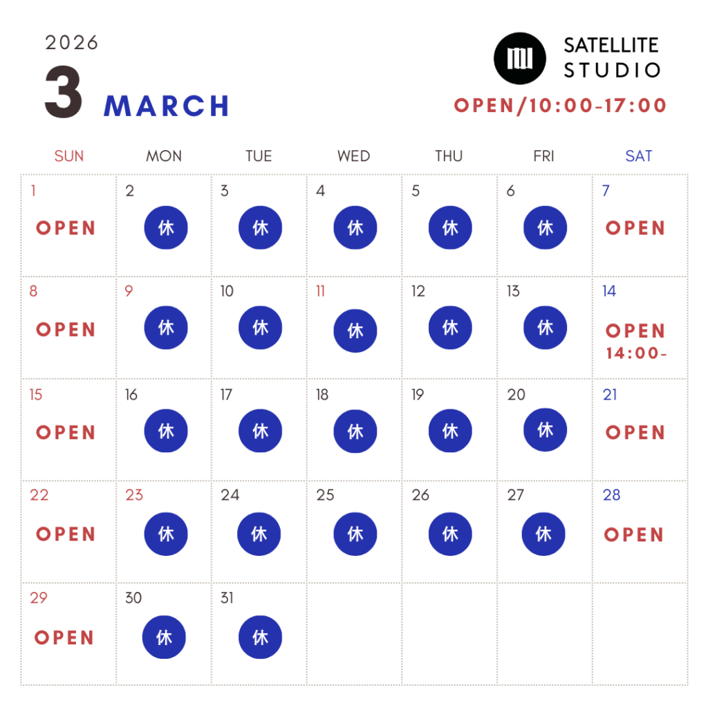 営業日:土・日・祝(月・火・木・金曜日 完全予約制) / 10:00 – 18:00